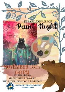 This adult only event (18+) is a blend of creativity, fun, and community spirit, all set against the dazzling backdrop of our restored historic carousel in our stunning event space. Come for the paint, stay for a ride, and make memories that’ll go round and round!